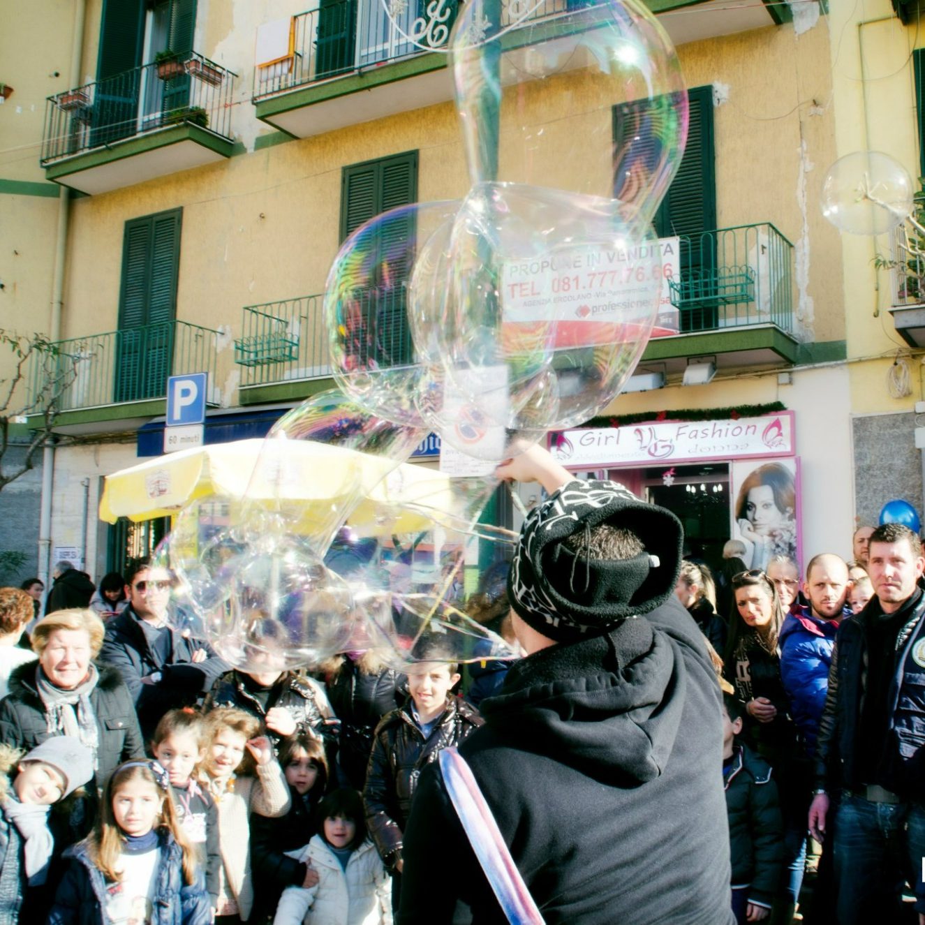 Schaffen Sie unvergessliche Momente mit riesigen, schillernden Seifenblasen, die Kinder strahlen lassen.